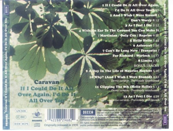 TRACKLIST 1 If I Could Do It All Over Again I'd Do It All Over You (3:05) 2 And I Wish I Were Stoned/Don't Worry (8:12) 3 As I Feel I Die (5:12) 4 With An Ear To The Ground You Can Make It / Martinian / Only Cox / Reprise (9:51) 5 Hello Hello (3:44) 6 Asforteri (1:20) 7 Can't Be Long Now / Francoise / For Richard / Warlock (14:17) 8 Limits (1:32) Bonus tracks: 9 A Day In The Life Of Maurice Haylett (5:40) 10 Why? (And I Wish I Were Stoned) (4:22) 11 Clipping The 8th (Hello Hello) (3:13) 12 As I Feel I Die (4:39) |