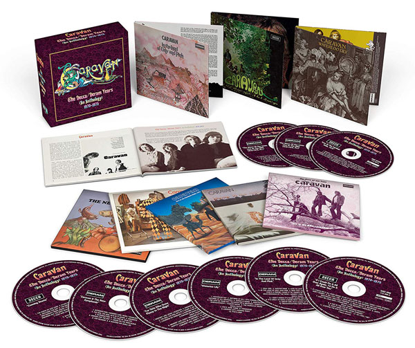 A 9 CD box set featuring Caravan's magical Decca/Deram label output. The set collects the remastered 2001 reissues of the band’s six classic Decca/Deram albums (INCLUDING BONUS MATERIAL), as well as Live At The Fairfield Halls, 1974 and The Show Of Our Lives: Live At The BBC 1968-1975. 8 gatefold digipaks with original album artwork are packaged in a rigid slipcase with an accompanying 44 page booklet detailing the history of the definitive ‘Canterbury Sound’ band. |