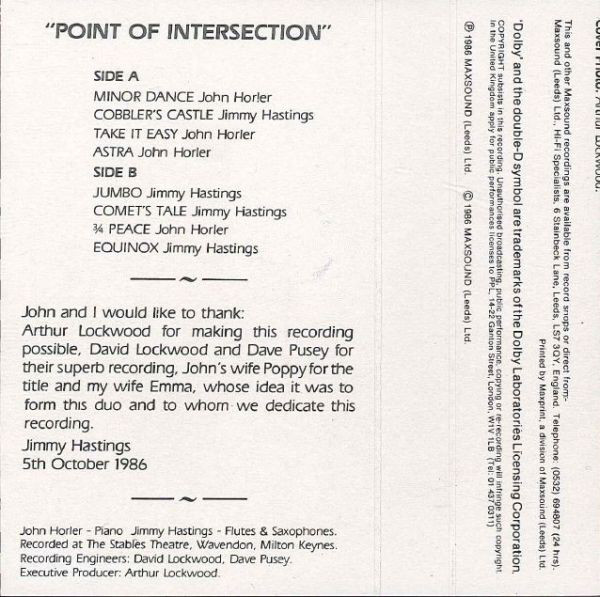 Jimmy Hastings (flute, saxophone) John Horler (piano) | |