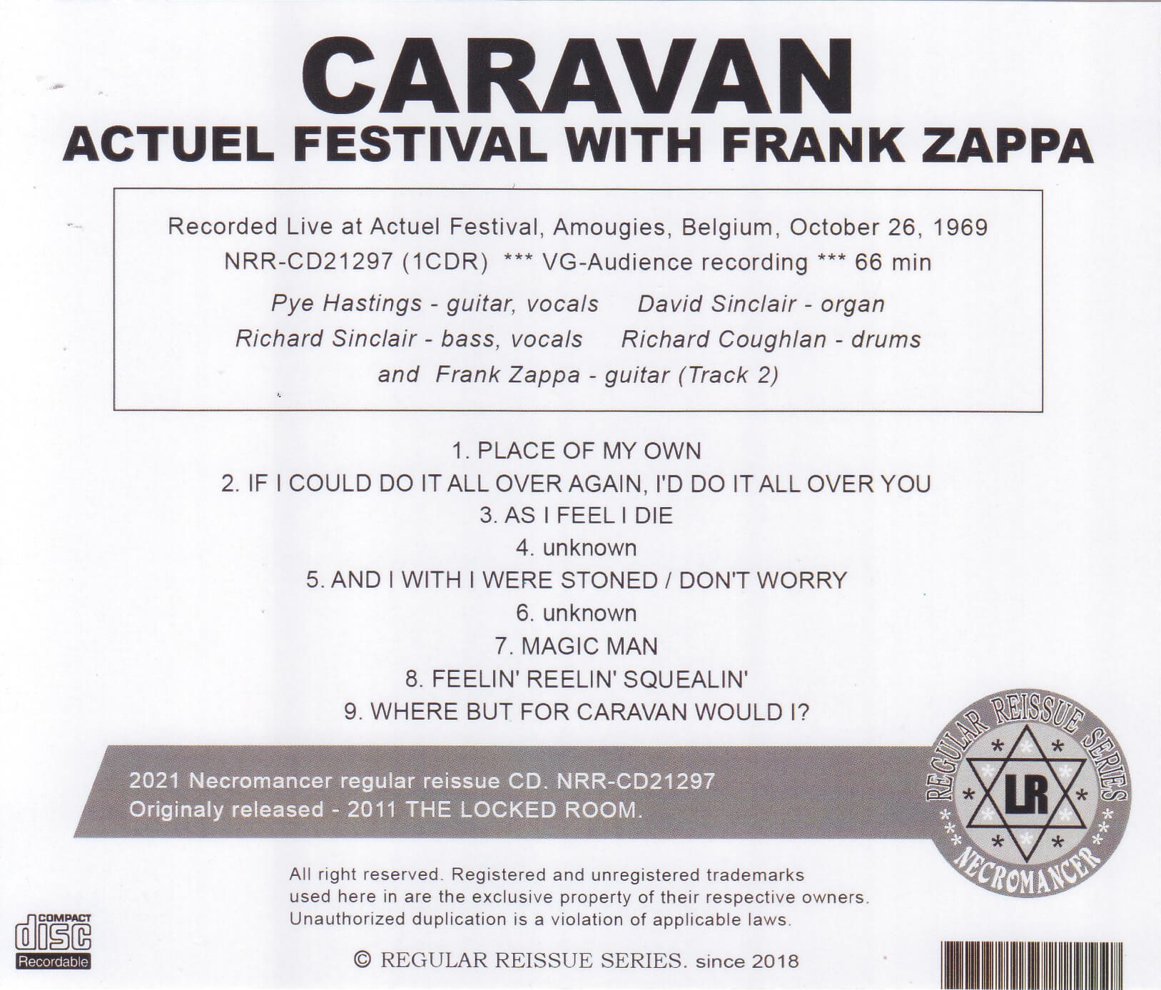 TRACKLIST 1 Place Of My Own (5:35) 2 If I Could Do It All Over Again, I'd Do It All Over You (7:36) 3 As I Feel I Die (4:45) 4 Break Away (7:26) 5 And I Wish I Were Stoned / Don't Worry (7:55) 6 Standing (6:11) 7 Magic Man (6:34) 8 Feelin' Reelin' Squealin' (8:32) 9 Where But For Caravan Would I ? (11:33) Recorded Live 26.10.1969 At Actuel Festival, Amougies, Belgium Source: Audience (MONO) | |