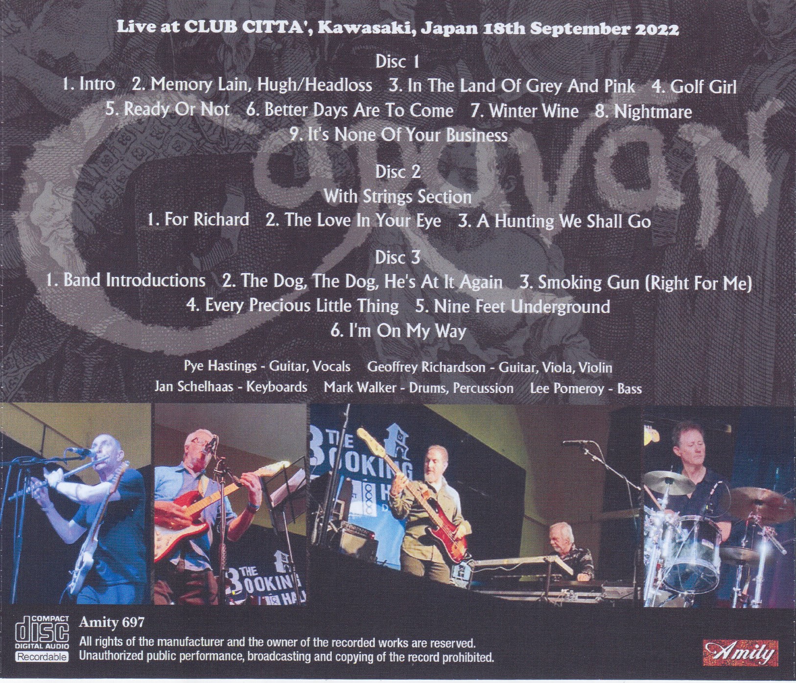 TRACKLIST disk 1 1 Intro 2 Memory Lain, Hugh / Headloss 3 In The Land Of Grey And Pink 4 Golf Girl 5 Ready Or Not 6 Better Days Are To Come 7 Winter Wine 8 Nightmare 9 It's None Of Your Business disk 2 WITH STRING SECTION 1 For Richard 2 The Love In Your Eye 3 A Hunting We Shall Go disk 3 1 Band Introductions 2 The Dog, The Dog, He's At It Again 3 Smoking Gun (Right For Me) 4 Every Precious Little Thing 5 Nine Feet Underground 6 I'm On My Way | |