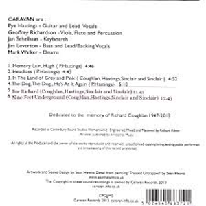 Buy the cd @ the Paradise Filter shop TRACKLIST 1 Memory Lain, Hugh (4:46) 2 Headloss (4:43) 3 In The Land Of Grey And Pink (4:52) 4 The Dog, The Dog, He’s At It Again (5:10) 5 For Richard (11:41) 6 Nine Feet Underground (17:43) LINE UP Pye Hastings (vocals, guitars) Jim Leverton (bass, vocals) Geoffrey Richardson (viola, guitar, flute, spoons, vocals) Jan Schelhaas (keyboards) Mark Walker (drums, percussion) VERSIONS year/format/label/cat/country 2014/CD/Caravan Records/CPGJJM3/UK |