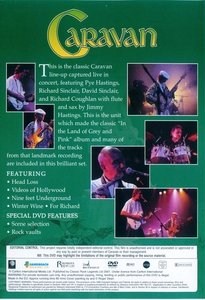 Caravan's self-titled DVD (also referred to as "Caravan Live" in the credits) is yet another concert document by the Canterbury-spawned band, from a 1990 show at Central Studios in Nottingham. Originally released as part of the |Bedrock series, it features the lineup of Pye Hastings (guitar, vocals), Richard Coughlan (drums), Dave Sinclair (keyboards), Jimmy Hastings (sax, flute), and Richard Sinclair (bass, vocals) in five pieces, including the epic-length "Nine Feet Underground." Their performance is laid-back and smooth, with some gorgeous sax work by Jimmy Hastings and excellent playing all around. One reason that Caravan has endured across 36 years of history is that they've never lost their musical edge or their virtuosity, and they can still make a decades-old song -- even one running 15 minutes -- fascinating to hear. The audio quality might not quite match the more recent concert documents by the band, which reflect better technology and more special venues (especially their American tour), but this will more than suffice, nearly an hour of progressive rock that's out of its own time but not lacking for excitement, hard and sharp edges, or virtuosity. Director David Millard does an excellent job of keeping his cameras in motion and the shots and angles constantly changing as the focus shifts around the music and songs. Each track gets its own chapter number and, for a change in this series, the numbers correspond to the songs they're supposed to match up with. The disc opens on a simple three-selection menu that goes to three layers deep in presenting selections from the rest of the Classic Rock Legends DVD catalog. Bruce Eder (ALLMUSIC) Favourites Made Visual. The DVD of Caravan live that I ordered from Classic Rock Productions came in the mail today. As I suspected/hoped, it's the 1990 Bedrock TV production (released on CD in 1993 by Demon/Code 90), which was a very high budget affair -- 6 or 7 cameras (including a couple on booms), 24-track recording, huge stage, absolutely fabulous sound, and overall a great show. It was broadcast once in England (at like 3:30 am!) and then locked away in a vault for 13 years. For some reason two short tracks on the Code 90 CD are NOT included in the DVD, "If I Could Do It All Over Again" and "In The Land of Grey and Pink" which is a shame, but what's here is great quality stuff. The CD has been a perpetual favourite of mine for the past decade & change so I'm happy to add the visuals accompanying it to my collection. Robert Carlberg (Seattle) 5/5 21.02.2004 (AMAZON)) Jigsaw puzzles on a tree. There is no arse shakin, hair flinging or head bangin' goin on at this 1990 gig. But what we have is the original line-up including Pye's brother Jimmy Hastings on sax and very lyrical flute. Their songs and sound have a unique and unforced, esoteric English tone to them. Pye and Richard Sinclair share vocals (they sing, not scream) with an air of sincerity. There are times when the drummer really gets his kit and the whole band swinging, and Richard Sinclair's fretless Fender bass is musical and a great joy (look for the decal of a little mouse holding a giftbox on the front of the bass, quite funny). To me this is the definitive lineup. I bought this dvd with some reservation, but it gets played as much or more than any others, when I want to hear some good, unorthodox English rock yet not get blasted or srceamed at. My criticism is they chose to use digital keyboards instead of real organ, electric piano (and analog synth if any). This gets played in my home often and I'm sure I'll watch it again very soon. A Customer 5/5 16.12.2002 (AMAZON) I was lucky enough to buy this DVD on NEARFest 2002 Prog Rock festival for less and had it signed by current Caravan line-up! ( Not to mention that their show on NEARFest was great, easly the best festival performance!) I cannot rate myself as great Caravan/Canterbury fun, but I really enjoy their set! The concert recorded on the DVD took place about 10-15 years long. Caravan was in the great form then ( and now) it played their classic: For Richard, White Wine, Ten Feet Underground, etc. The concert represents Caravan classic line-up: Sinclair bros, Pye Hastings, their original drummer, etc. Highly recommended for Canterbury nuts and all prog heads! nessy (Nashua, NH United States 5/5 10.07.2002 (AMAZON) Videos of Nottingham. Like Wishbone Ash, Strawbs, Rick Wakeman, Hawkwind, Asia, and several other legendary bands, Caravan also have their own entry in the Classic Rock Legends video library. Released early in the new millennium, all of these DVDs have beautiful art work by the great Roger Dean. Caravan here consists of Pye Hastings, Richard Sinclair, David Sinclair, and Richard Coughlan. A set list of five songs is performed including an excellent rendition of Nine Feet Underground. Other familiar songs include Winter Wine and Head Loss. The only number I don't particularly like is the poppy Videos Of Hollywood. Overall, this is a good performance, but the band does not have a very strong stage presence. The audio is better than the video. A worthy entry in Classic Rock Legends series and a good addition to a Caravan collection SouthSideoftheSky 3/5 15.09.2013 (PROGARCHIVES) Further evidence that someone else out there is trying to spread the Canterbury word came in the usual roundabout way concerning the Central TV series 'BEDROCK'. Some enlightened soul in Nottingham had seemingly decided that it would be a good idea to channel some funds away from Bullseye, Bob Holness et al, and use then to persuade various Seventies bands to reform, play under blinding stage lights in front of audiences attracted despite dismal publicity, and ultimately to appear on the small screen in the early hours of some midweek morning. As a venture it seems to have met with some degree of success, if we take as examples the three bands which will principally interest readers of FACELIFT, namely HATFIELD AND THE NORTH, GONG and CARA