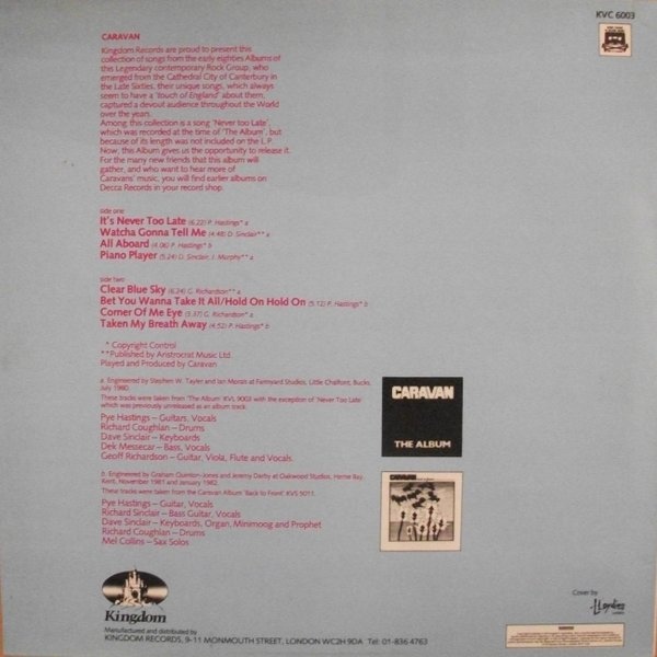 TRACKLIST A1 It's Never Too Late (6:22) A2 Watcha Gonna Tell Me (4:48) A3 All Aboard (4:06) A4 Piano Player (5:24) B1 Clear Blue Sky (6:24) B2 Bet You Wanna Take It All/Hold On, Hold On (5:12) B3 Corner Of Me Eye (3:37) B4 Taken My Breath Away (4:52) Tracks A2, A4, B1, B3 are from "The Album" Tracks A3, B2, B4 are from "Back To Front" Track A1 is B-side of single "Heartbreaker/It's Never Too Late" |