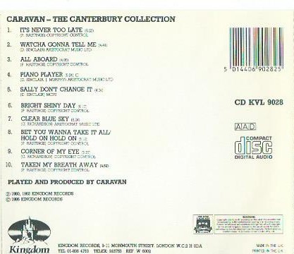 Released in 1986, this CD has tracks from the two Caravan albums called The Album and Back To Front, plus one bonus track. It contains just 10 tracks from each album and is 50 minutes long. When this CD was released in 1986, The Album and Back to Front LP's were out of print and CD versions wouldn't be available until 1990. So, it was the only way to get these songs, if you really wanted them.