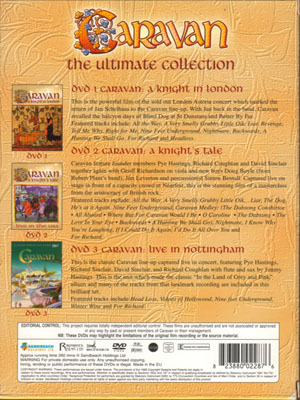 For authorised and approved releases check out Demon Records' new issue of the 1990 ITV Bedrock television concert titled Access All Areas now available as a remastered CD/DVD package with exclusive bonus material. Salvo have issued a PAL release of the band's 2010 television recording at Metropolis Studios in London which is combined with an exclusive CD release. In addition, the band have released many more official live recordings from 2010 through to 2015 which are part available from the official Caravan website including a DVD of their most recent USA concert.
