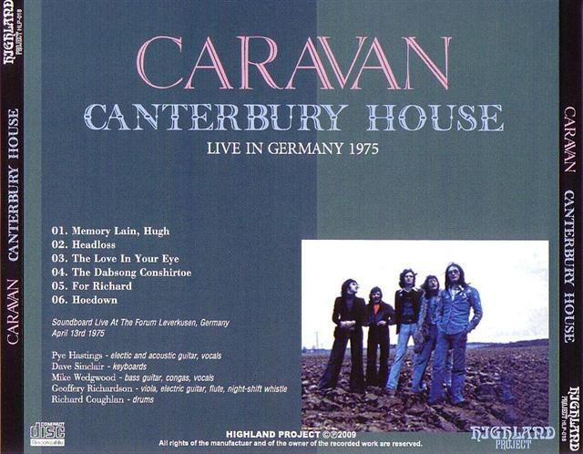 CANTERBURY HOUSE (2009) TRACKLIST 1 Memory Lain, Hugh (5:05) 2 Headloss (4:21) 3 The Love In Your Eye (16:44) 4 The Dabsong Conshirtoe (12:46) 5 For Richard (18:35) 6 Hoedown (7:50) Recorded live 13.04.1975 at Forum, Leverkusen, Germany |